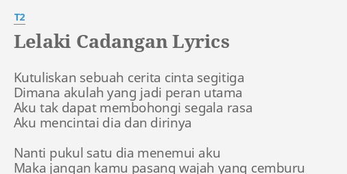 Lelaki Cadangan Lyrics By T2 Kutuliskan Sebuah Cerita Cinta